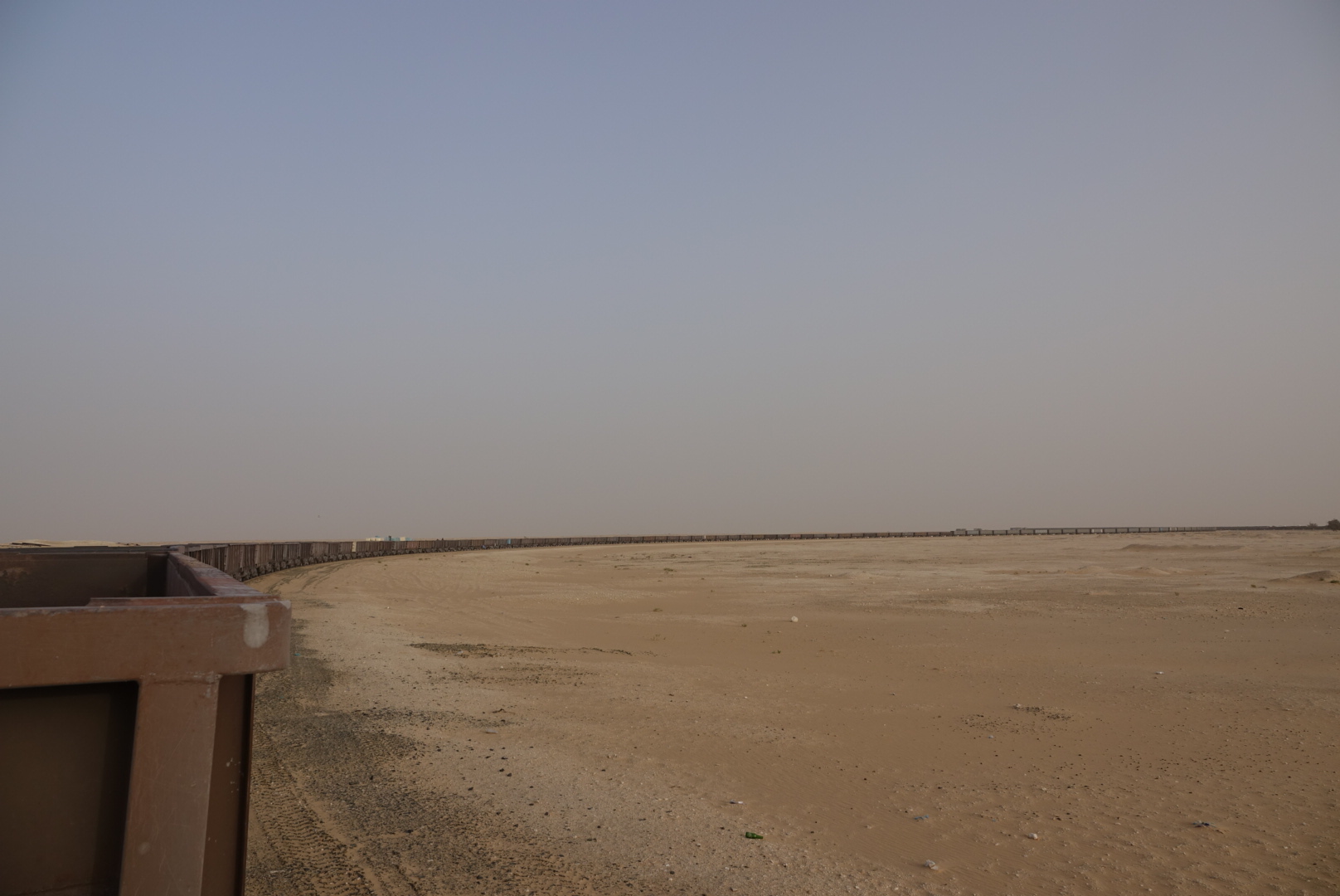 Desde Zouérate, el tren sale cargado esta vez, a primera hora de la tarde. Estoy en la estación alrededor del mediodía, subo al vagón cargado con mineral cuando llega el tren alrededor de las 14h. Pero no salimos hasta las 16h porque estamos esperando que otros vagones que quedan en la mina salgan llenos y se junten a los nuestros para salir más cargados.