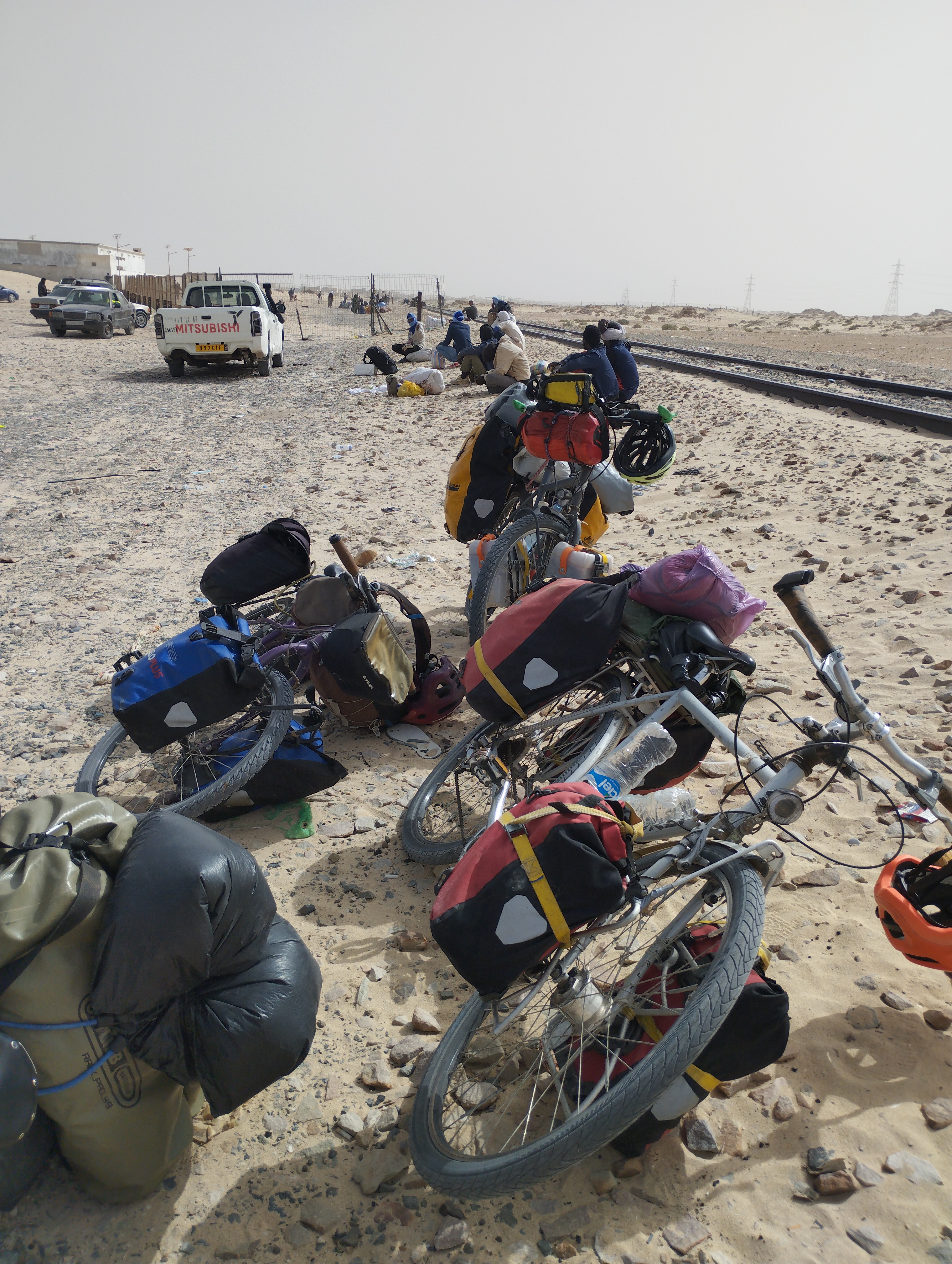 El tren generalmente permanece bastante tiempo en las paradas principales, Nuadibú, Choum y Fderik/Zouérate, unos 20 a 30 minutos como mínimo, lo que nos da tiempo suficiente para cargar todas las bicicletas y alforjas.