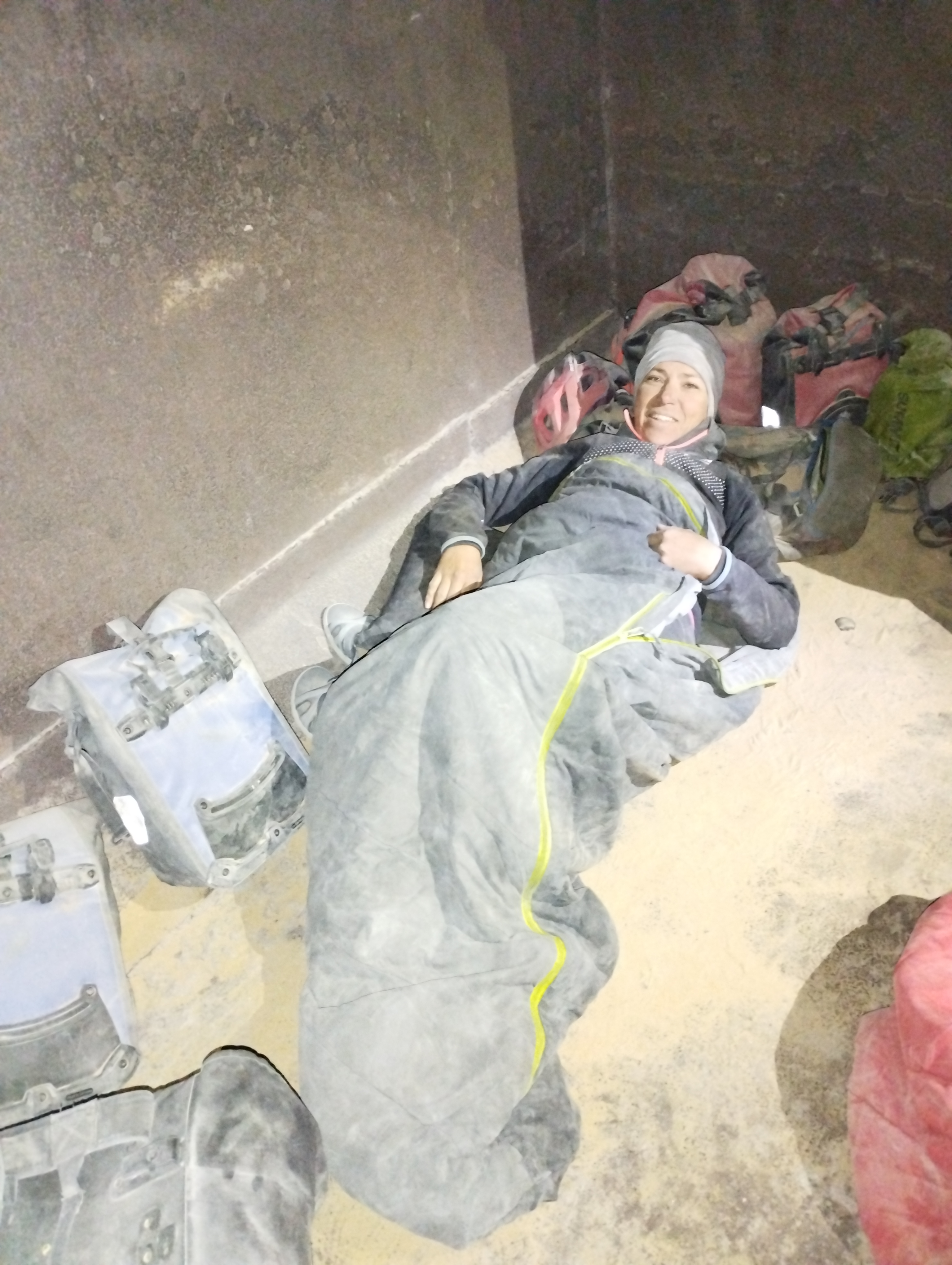 En el vagón vacío hay espacio para tumbarse pero es difícil dormir. Hace frío, hay un ruido infernal y tienes polvo y arena constantemente a tu alrededor. Todavía intento descansar porque tomo el tren al día siguiente (el mismo día de llegada a Zouérate). ¡Creo que este es uno de los peores lugares en los que he dormido (o intentado)!